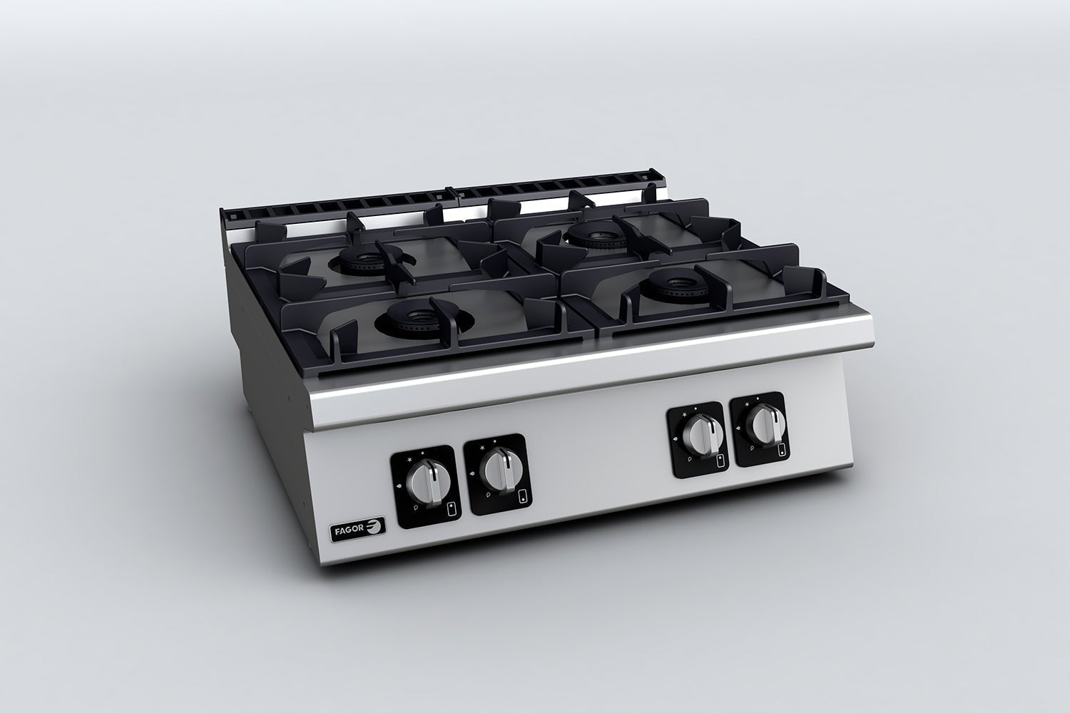 - Double-crown burners and diffusers made of nickel-plated cast iron which guarantee an even distribution of heat from the flameto the base of the pans, even for large pans. This therefore prevents heat from building up in a specific point and optimises energy transfer to the product.
