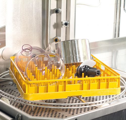 The VCM is manufactured solely from hygiene certified material. The machine has smooth surfaces, rounded edges and has no unnecessary recesses where food might penetrate and get stuck. The machine base also has a drainage hole to prevent water accumulating on the top. For rapid cleaning, all loose components are easy to remove making the machine easy to rinse. All loose parts can be washed in the dishwasher.