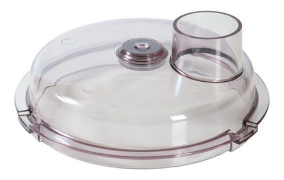 The VCM has a scraper system designed to prevent food getting stuck on the inside and the lid of the bowl, where the knives are unable to reach. The four scraper arms keep the lid and the inside of the bowl clean as well as moving the ingredients back towards the knives making cutting the contents more efficient. This patented function enables the knives to cut the contents more effectively, shortening preparation time considerably and reducing heat arising from the cutting process. The lid has a 5 cm wide feed tube for filling while the machine is running.